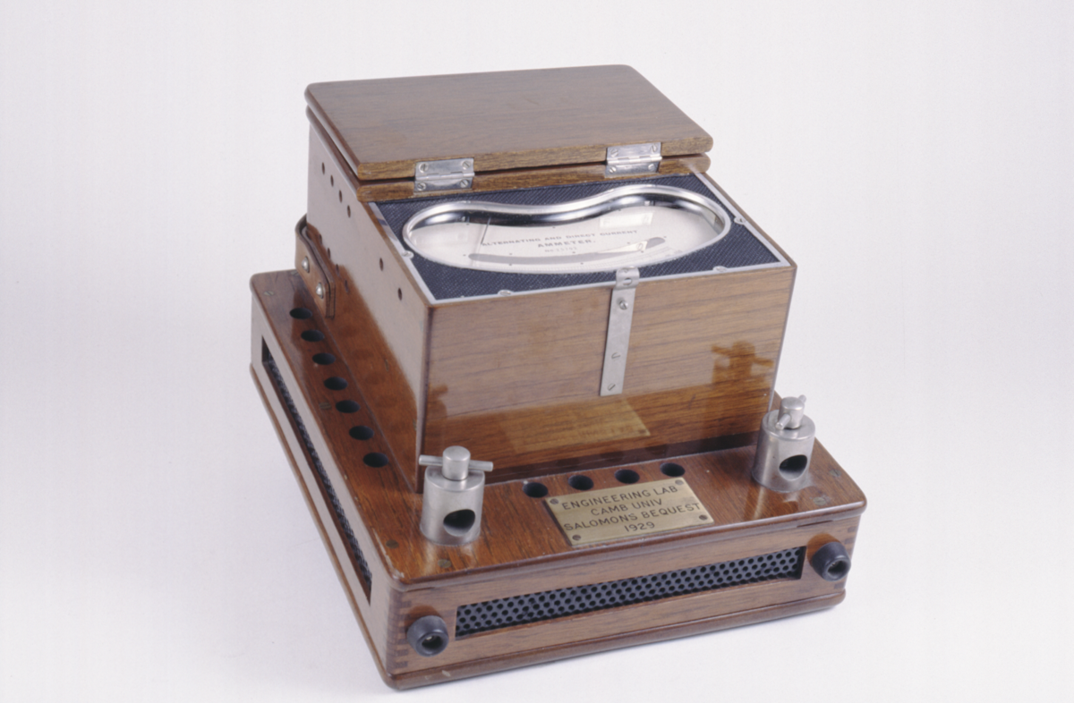 on brass plate on base of box (added): “ENGINEERING LAB / CAMB UNIV / SALOMONS BEQUEST / 1929”