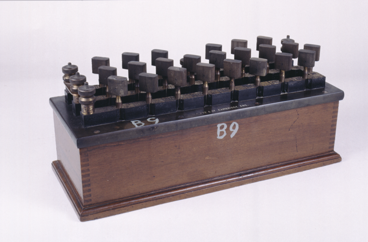 Plug type Wheatstone Bridge, Post Office pattern, by W. G. Pye & Co., English, 1935.