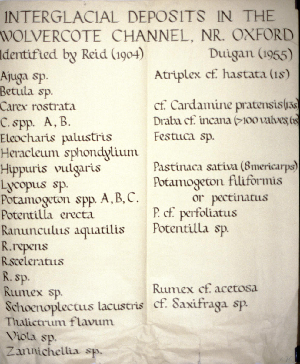 Teaching diagram listing interglacial depositions in the Wolvercote Channel near Oxford (identified by Reid, 1904).