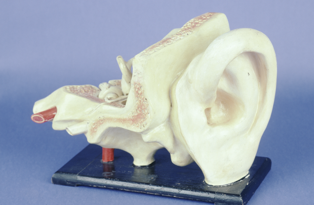 anatomical model of a human ear in papier-mâché and plaster, late 19th to early 20th Century