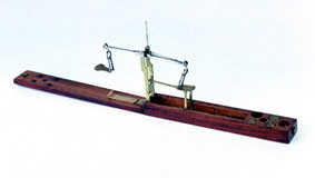 Equal arm type. Mahogany box. Brass column, pans and weights; steel beam and pointers. Pointers: one fixed rigidly to column; second pivoted to beam with retaining spring to facilitate folding into box. Steel keyhole hangers; circular weight pan with rectangular extension from hanger and shallow rim; ‘Doll’s head’ coin pan; brass link and rest for weight pan; cranked brass column with steel terminals with hinge folding automatically. Spaces in box for 5 weights (2 missing); stamped ‘5:8’ (guinea), ‘2:16’ (1/2 guinea) and ‘1/2’ (sovereign). clip fastening. Velvet lining in box.